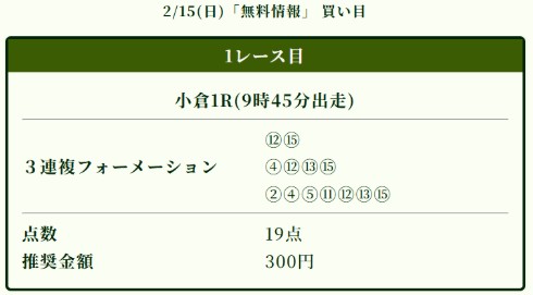 私はサイトの買い目指示通り1点300円で勝負しましたが