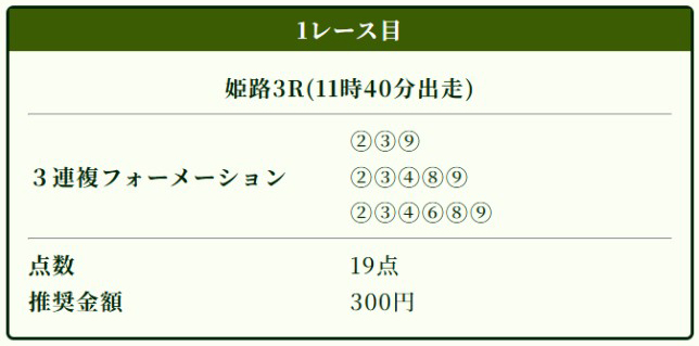 姫路3R/三連複/買い目点数19点