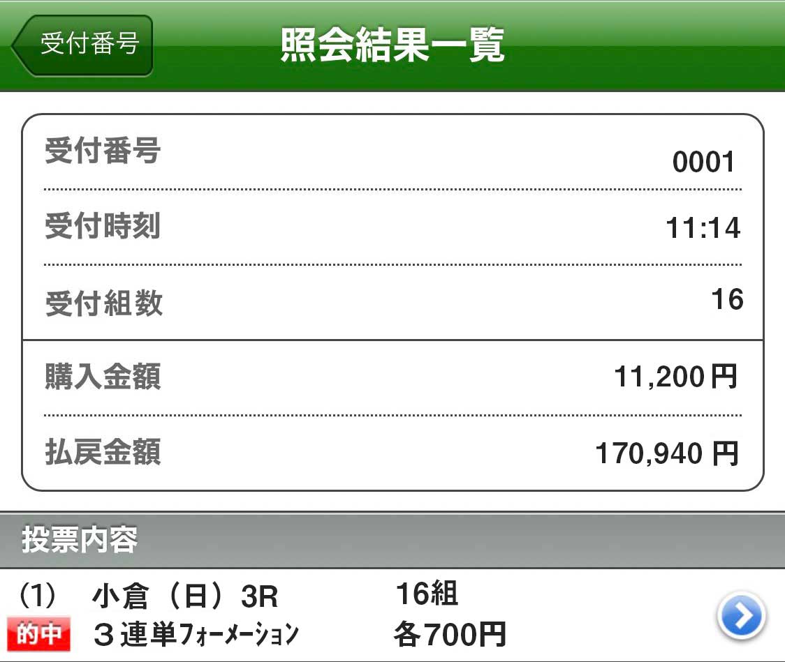 これ、1点1000円で勝負してたら10万円超えの配当・・・!